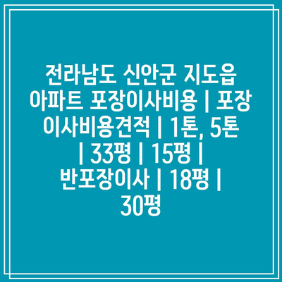 전라남도 신안군 지도읍 아파트 포장이사비용 | 포장 이사비용견적 | 1톤, 5톤 | 33평 | 15평 | 반포장이사 | 18평 | 30평 에 대해 자주 묻는 질문 TOP 5