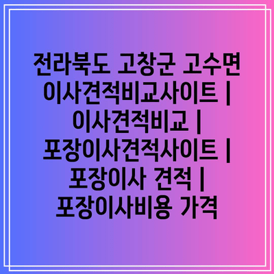 전라북도 고창군 고수면에서 이사를 하신다면, 이사견적비교사이트를 통해 다양한 이사업체를 비교하고 가장 적합한 가격과 서비스를 찾을 수 있습니다.