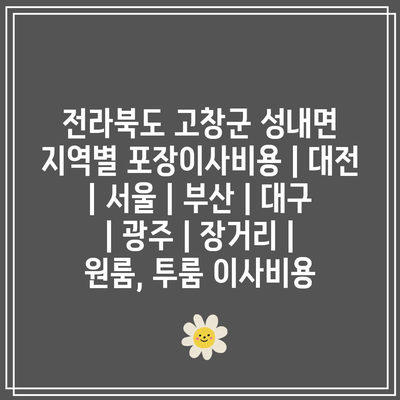 전라북도 고창군 성내면 지역별 포장이사비용 | 대전 | 서울 | 부산 | 대구 | 광주 | 장거리 | 원룸, 투룸 이사비용 에 대해 자주 묻는 질문 TOP 5