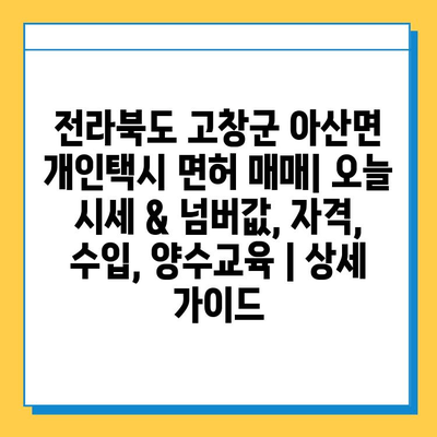 ✅ 고창군 아산면 개인택시 면허 매매 시세, 넘버값, 자격, 수입, 양수교육 정보를 한눈에 확인하고 싶으신가요? 지금 바로 상세 가이드를 확인하세요!