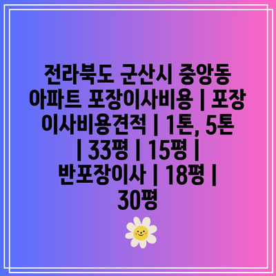 ## 전라북도 군산시 중앙동 아파트 포장이사비용 | 포장 이사비용견적 | 1톤, 5톤 | 33평 | 15평 | 반포장이사 | 18평 | 30평 에 어울리는 부제목 5가지 (10자 내외)