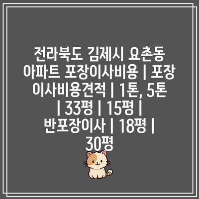 전라북도 김제시 요촌동 아파트 포장이사비용 | 포장 이사비용견적 | 1톤, 5톤 | 33평 | 15평 | 반포장이사 | 18평 | 30평 에 대해 자주 묻는 질문 TOP 5