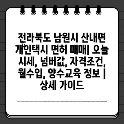 전라북도 남원시 산내면 개인택시 면허 매매: 오늘 시세, 넘버값, 자격조건, 월수입, 양수교육 정보