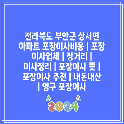 전라북도 부안군 상서면에서 안전하고 신뢰할 수 있는 포장 이사 서비스를 찾고 있나요?