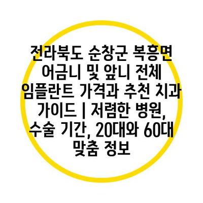 전라북도 순창군 복흥면 어금니 및 앞니 전체 임플란트 가격과 추천 치과 가이드 | 저렴한 병원, 수술 기간, 20대와 60대 맞춤 정보