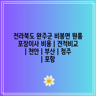 ## 전라북도 완주군 비봉면 원룸 포장이사 비용 | 견적비교 | 천안 | 부산 | 청주 | 포항 에 어울리는 부제목 5개 (10자 내외)는 이사 준비 과정에서 중요한 부분입니다. 지역별 가격 비교, 견적 비교, 이사짐센터 추천 등 다양한 정보가 필요합니다. 이를 통해 예산에 맞는 합리적인 이사를 계획할 수 있습니다.