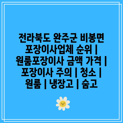 ✅ 전라북도 완주군 비봉면의 포장이삿짐센터 순위와 가격은?