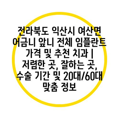 ✅ 전라북도 익산시 여산면의 임플란트 비용과 추천 치과 정보를 자세히 알아보세요.