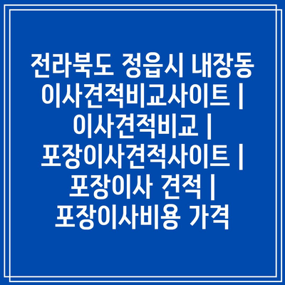 A. “전라북도 정읍시 내장동 이사견적비교사이트 | 이사견적비교 | 포장이사견적사이트 | 포장이사 견적 | 포장이사비용 가격”는 정읍시 내장동 지역 내 이사견적을 비교할 수 있는 사이트입니다. 이용자는 이 사이트에서 포장이사까지 다양한 이사 서비스에 대한 견적을 빠르고 쉽게 받아볼 수 있습니다.