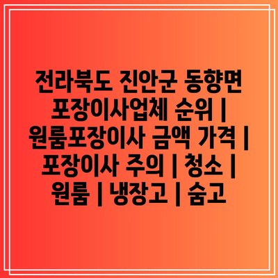 이 글에서는 진안군 동향면의 포장이사업체 순위에 대해 소개하고, 원룸 포장이사 가격, 포장이사 시 주의 사항, 청소 팁, 원룸 포장 시 주의 사항 등을 알려알려드리겠습니다.