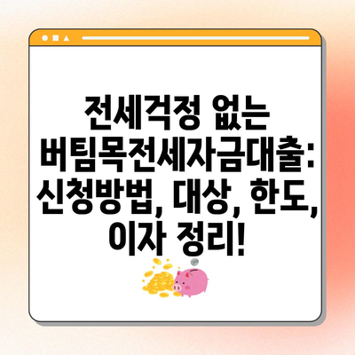전세걱정 없는 버팀목전세자금대출의 신청방법, 대출 대상, 한도, 이자에 대해 자세히 알아보세요. 저렴한 이자로 전세자금을 마련할 수 있습니다.