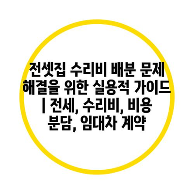 전셋집 수리비 배분 문제 해결을 위한 실용적 가이드 | 전세, 수리비, 비용 분담, 임대차 계약