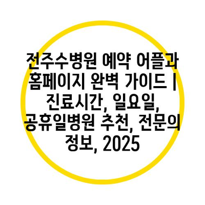 전주수병원 예약 어플과 홈페이지 완벽 설명서 | 진료시간, 일요일, 공휴일병원 추천, 전연락 정보, 2025에 대해 알아보겠습니다.