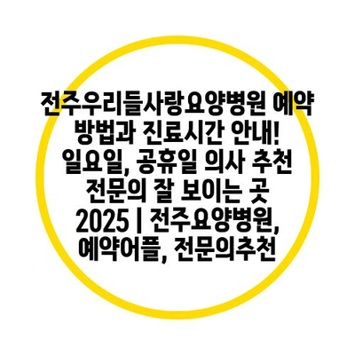 전주우리들사랑요양병원 예약 방법과 진료시간 공지! 일요일, 공휴일 의사 추천 전연락 잘 보이는 곳 2025 | 전주요양병원, 예약어플, 전연락추천 에 대해 자주 묻는 질문 TOP 5