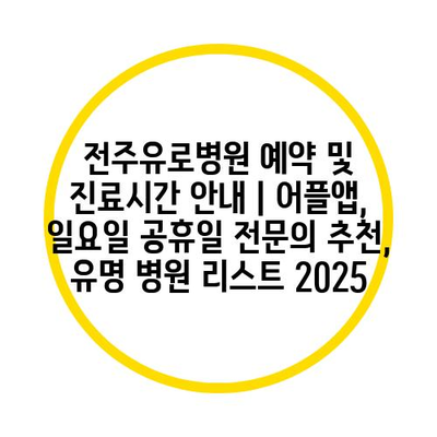 전주유로병원 예약 및 진료시간 공지 | 어플앱, 일요일 공휴일 전연락 추천, 유명 병원 리스트 2025