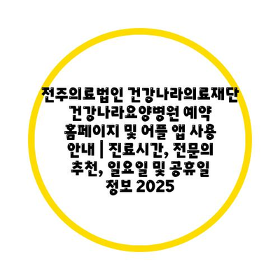 전주의료법인 건강나라의료재단 건강나라요양병원 예약 홈페이지 및 어플 앱 사용 안내 | 진료시간, 전문의 추천, 일요일 및 공휴일 정보 2025