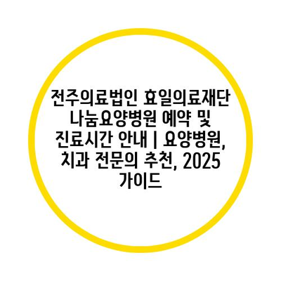 전주의료법인 효일의료재단 나눔요양병원 예약 및 진료시간 공지 | 요양병원, 치과 전연락 추천, 2025 설명서 에 대해 자주 묻는 질문 TOP 5