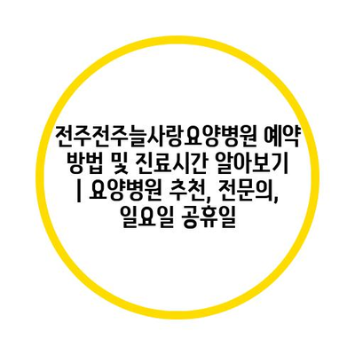 전주전주늘사랑요양병원 예약 방법 및 진료시간 알아보기 | 요양병원 추천, 전연락, 일요일 공휴일 에 대해 자주 묻는 질문 TOP 5