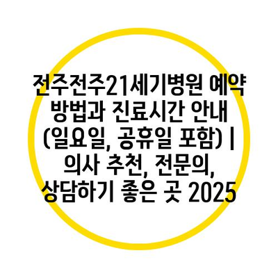 전주전주21세기병원 예약 방법과 진료시간 공지 (일요일, 공휴일 포함) | 의사 추천, 전연락, 상담하기 좋은 곳 2025 에 대해 자주 묻는 질문 TOP 5