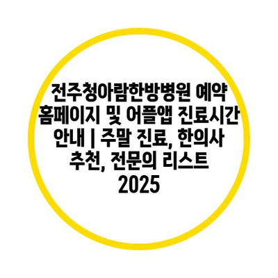 전주청아람한방병원 예약 홈페이지 및 어플앱 진료시간 공지 | 주말 진료, 한의사 추천, 전연락 리스트 2025에 대해 알아보겠습니다.