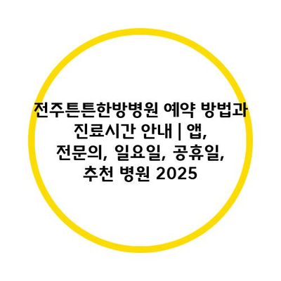 전주튼튼한방병원 예약 방법과 진료시간 공지 | 앱, 전연락, 일요일, 공휴일, 추천 병원 2025 에 대해 자주 묻는 질문 TOP 5