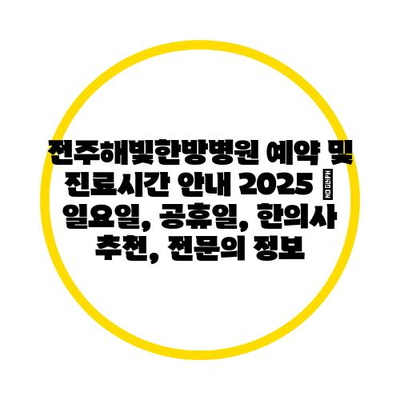 전주해빛한방병원 예약 및 진료시간 공지 2025 | 일요일, 공휴일, 한의사 추천, 전연락 정보 에 대해 자주 묻는 질문 TOP 5