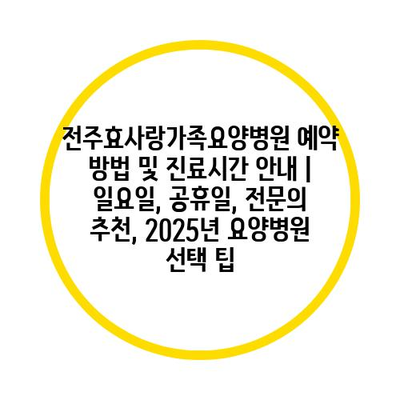 전주효사랑가족요양병원 예약 방법 및 진료시간 공지 | 일요일, 공휴일, 전연락 추천, 2025년 요양병원 선택 팁 에 대해 자주 묻는 질문 TOP 5