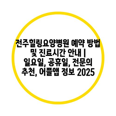 전주힐링요양병원 예약 방법 및 진료시간 공지 | 일요일, 공휴일, 전연락 추천, 어플앱 정보 2025 에 대해 자주 묻는 질문 TOP 5