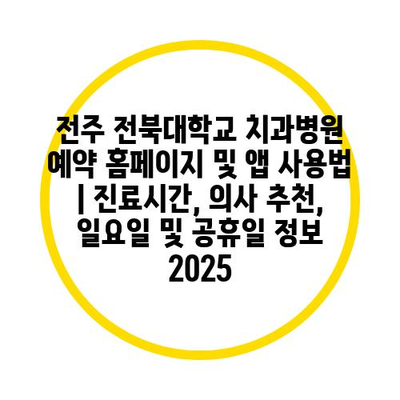 전주 전북대학교 치과병원 예약 홈페이지 및 앱 사용법 | 진료시간, 의사 추천, 일요일 및 공휴일 정보 2025에 대해 자주 묻는 질문 TOP 5