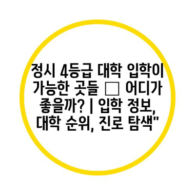 정시 4등급으로 대학에 진학할 경우 입학 기회가 많은 대학을 선택하는 것이 중요합니다.