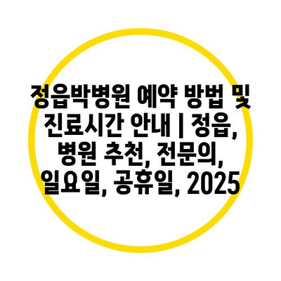 ✅ 정읍박병원의 진료시간과 예약 방법을 자세히 알아보세요.