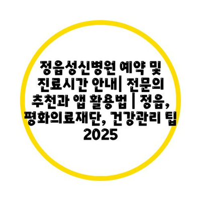 정읍성신병원 예약 및 진료시간 공지| 전연락 추천과 앱 활용법 | 정읍, 평화의료재단, 건강관리 팁 2025 에 대해 자주 묻는 질문 TOP 5