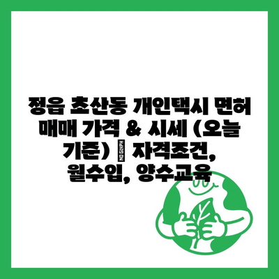 ✅ 정읍 초산동 개인택시 면허 매매 가격, 자격 조건, 월수입 등 궁금한 정보를 한눈에 확인하세요!