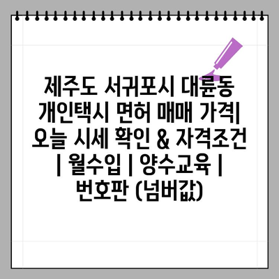 ✅ ### 버튼 설명: 제주도 서귀포시 대륜동 개인택시 면허 매매 가격, 오늘 시세는 얼마일까요? 궁금하다면 지금 바로 확인하세요!