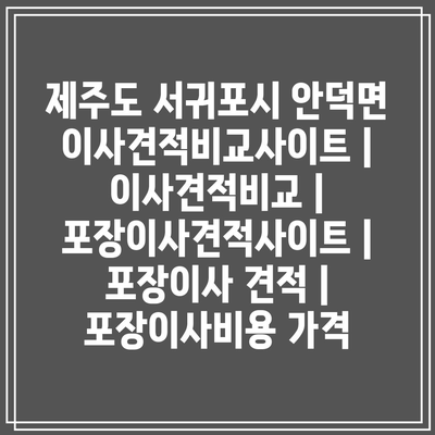 포장이사비용 가격 안내는 제주도 서귀포시 안덕면 이사견적비교사이트에서 확인하세요. 정확한 비용 견적을 받고, 다양한 포장이사 회사를 비교하여 최적의 선택을 하실 수 있습니다.