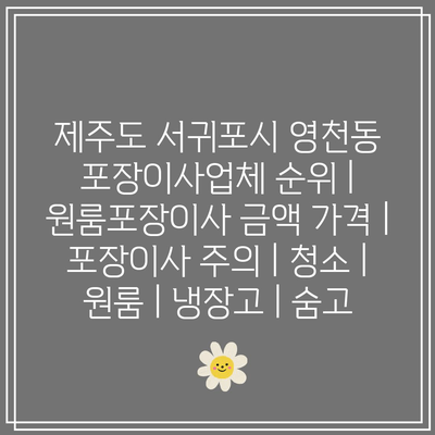 - 서귀포 영천동 포장이사 업체 순위 및 비교