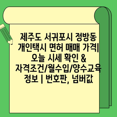 제주도 서귀포시 정방동 개인택시 면허 매매 가격| 오늘 시세 확인 & 자격조건/월수입/양수교육 정보 | 번호판, 넘버값 에 대해 자주 묻는 질문 TOP 5