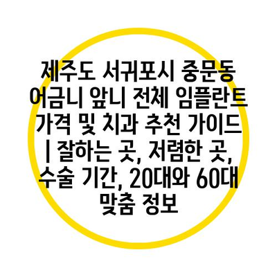 제주도 서귀포시 중문동에서의 임플란트 비용은 평균적으로 100만 원에서 300만 원까지 다양하며, 병원에 따라 차이가 나타납니다. 어떤 병원은 가격이 저렴해도 품질이 떨어질 수 있으니, 신중하게 선택하는 것이 중요합니다.