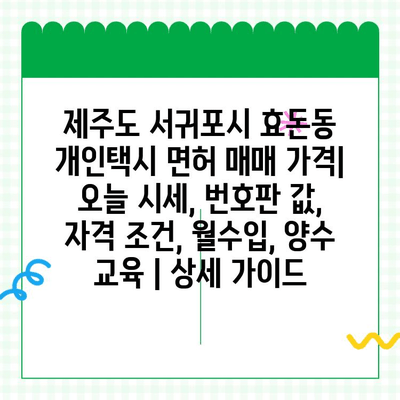 ✅ 제주도 서귀포시 효돈동 개인택시 면허 매매 가격, 오늘 시세, 번호판 값, 자격 조건, 월수입, 양수 교육 등 궁금한 모든 것을 한번에 확인하세요!
