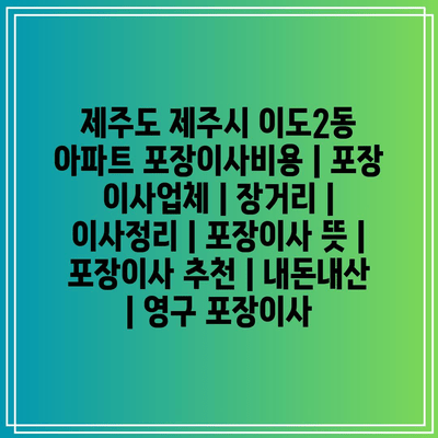 제주도 제주시 이도2동 아파트 포장이사 비용을 알아보세요! 포장 이사업체부터 장거리 이사까지 다양한 이사 서비스를 소개합니다. 또한, 이사 정리와 포장이사의 의미, 추천 업체, 내돈내산 이사 방법, 영구 포장이사에 대해서도 알아봅니다.