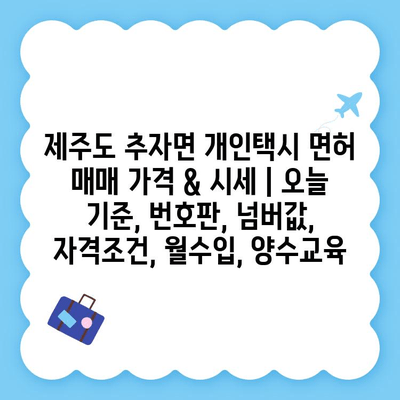 정확한 정보를 원하시면 추자면 지역의 개인택시 면허 매매 전문 업체에 연락하시거나, 직접 개인택시 면허를 매도하시는 분들과 연락하여 가격을 알아보시는 것을 추천합니다.