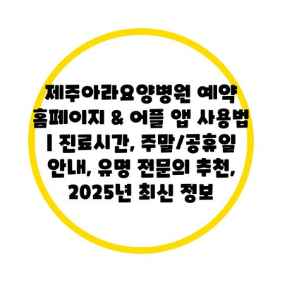 ✅ 제주아라요양병원의 진료시간과 예약 방법을 지금 바로 알아보세요!