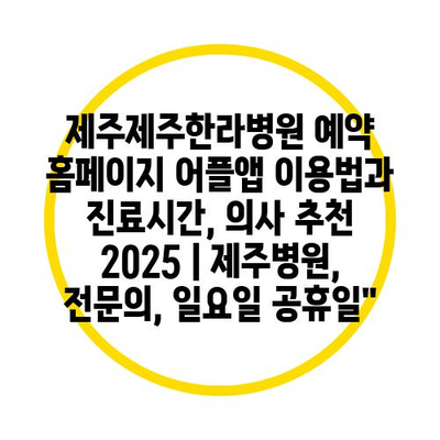 제주제주한라병원 예약 홈페이지 어플앱 이용법과 진료시간, 의사 추천 2025 | 제주병원, 전연락, 일요일 공휴일
