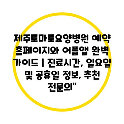 제주토마토요양병원 예약 홈페이지와 어플앱 완벽 가이드 | 진료시간, 일요일 및 공휴일 정보, 추천 전문의”