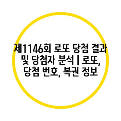 제1146회 로또 당첨 결과 및 당첨자 분석 | 로또, 당첨 번호, 복권 정보