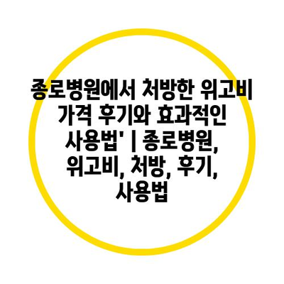 종로병원에서 처방한 위고비 가격 후기와 효과적인 사용법’ | 종로병원, 위고비, 처방, 후기, 사용법 에 대해 자주 묻는 질문 TOP 5