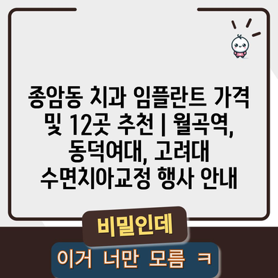 종암동 치과 임플란트 가격 안내와 추천치과 12곳 소개합니다. 월곡역, 동덕여대, 고려대 수면 치아교정 행사 정보까지 포함되어 있습니다.