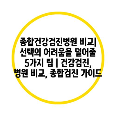 종합건강검진병원 비교| 선택의 어려움을 덜어줄 5가지 팁 | 건강검진, 병원 비교, 종합검진 설명서에 대해 자주 묻는 질문 TOP 5