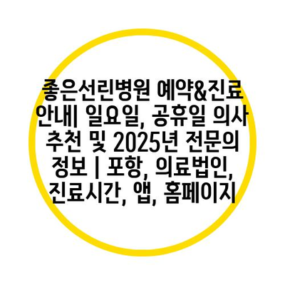좋은선린병원 예약&진료 안내| 일요일, 공휴일 의사 추천 및 2025년 전문의 정보 | 포항, 의료법인, 진료시간, 앱, 홈페이지