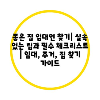 좋은 집 임대인 찾기| 실속 있는 팁과 필수 체크리스트 | 임대, 주거, 집 찾기 설명서